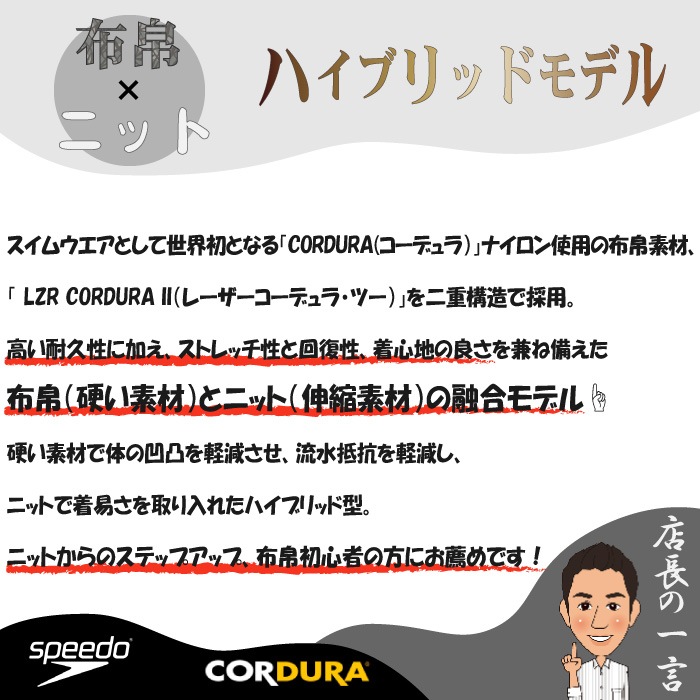 LZR CORDURAR 2 ナイロン61% ・ ポリウレタン39% FLEXΣ 2 ポリエステル85% ・ ポリウレタン15% |